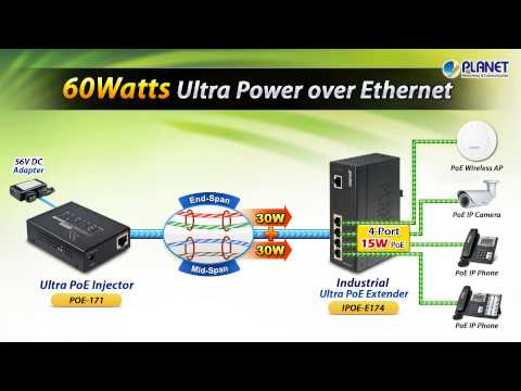 - Ultra Power over Ethernet End Span or Mid Span PSE